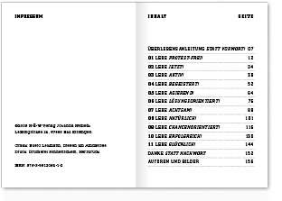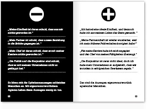 Durch die kreative Zusammenarbeit von Potenzialentwickler Andreas Nemeth und Grafiker Claus Lehmann, kam dieser kleine Ratgeber im Handtaschenformat heraus. Das Büchlein ist eine Anleitung vom Überleben zum erfüllten Leben: mit Checklisten zum Selbstausfüllen, impulsiven Grafiken und Bildern von Claus Lehmann und einem leicht verständlichen Text von Andreas Nemeth.